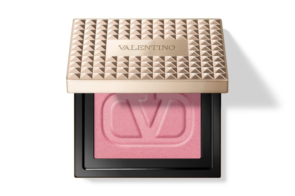 パッケージは、ブランドを象徴するスタッズを122個あしらったコンパクト。ゴールドトーンのデザインがラグジュアリーな存在感を放つ。