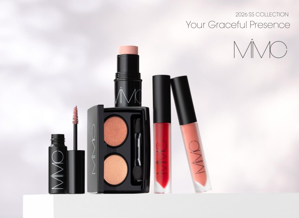 MiMCの春コスメは「ユア・グレイスフル・プレゼンス(Your Graceful Presence)」がテーマ。上品で優雅な存在感をキーワードに、ピンク、レッド、コーラルなどの血色カラーを集めてやわらかな光と温度で表現するカラーメイクを提案する。