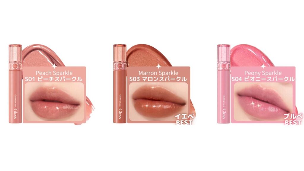 (左から)「グラスティングカラーグロス スパークル」4g S01,S03,S04 各1,320円<新製品 / 日本限定カラー>