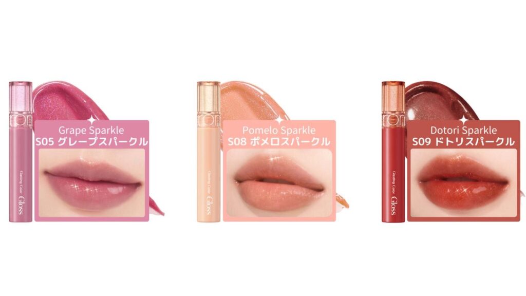 (左から)「グラスティングカラーグロス スパークル」4g S05,S08,S09 各1,320円<新製品 / 日本限定カラー>