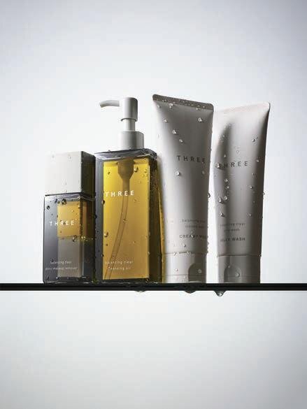 また、スクラブでかき出し、クレイで吸着、ヒタヒタ感触の寒天でつるんとなめらか肌に磨き上げるジェリー洗顔料「THREE バランシング クリア ジェリー ウォッシュ」も。毛穴につまった角栓や、ごわついた古い角質をみずみずしく摩擦レスにオフする。